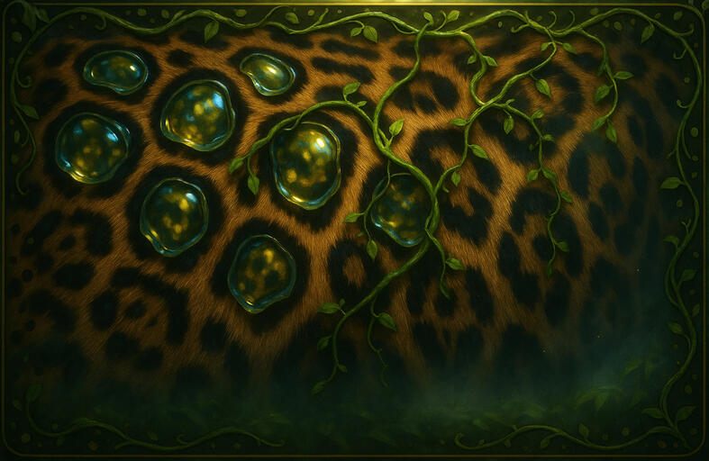 Waves of molten light pulse beneath a darkened skin, a leopard’s echo reborn as liquid fire shifting in silence